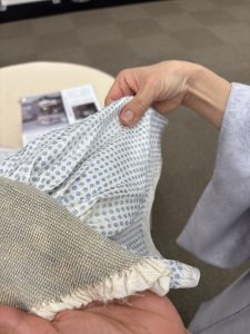 染め上がった絞りを括ってあった糸を解かせてもらいました。