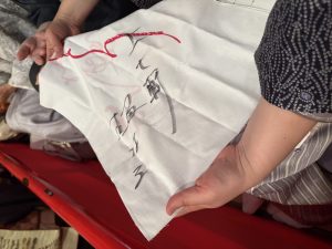 1番近い芸妓さんから手ぬぐいが飛んできてゲット!